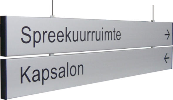Diverse bewegwijzerings borden als (dubbelzijdig) hangbord of enkelzijdig wandbord. Heel voordelige budget borden en luxe hangborden. Helemaal